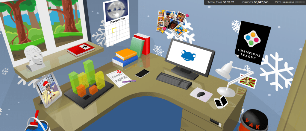 The end of the year is upon us once again. With it comes snow, wind, and a whole heap of goodies from Frog Play! Why not unlock a Christmas Tree outfits for your Avatar, or switch up your background to a winter wonderland? Maybe you’ve changed your Avatar outfit to something smarter for a festive party, or an ‘ugly’ winter jumper.